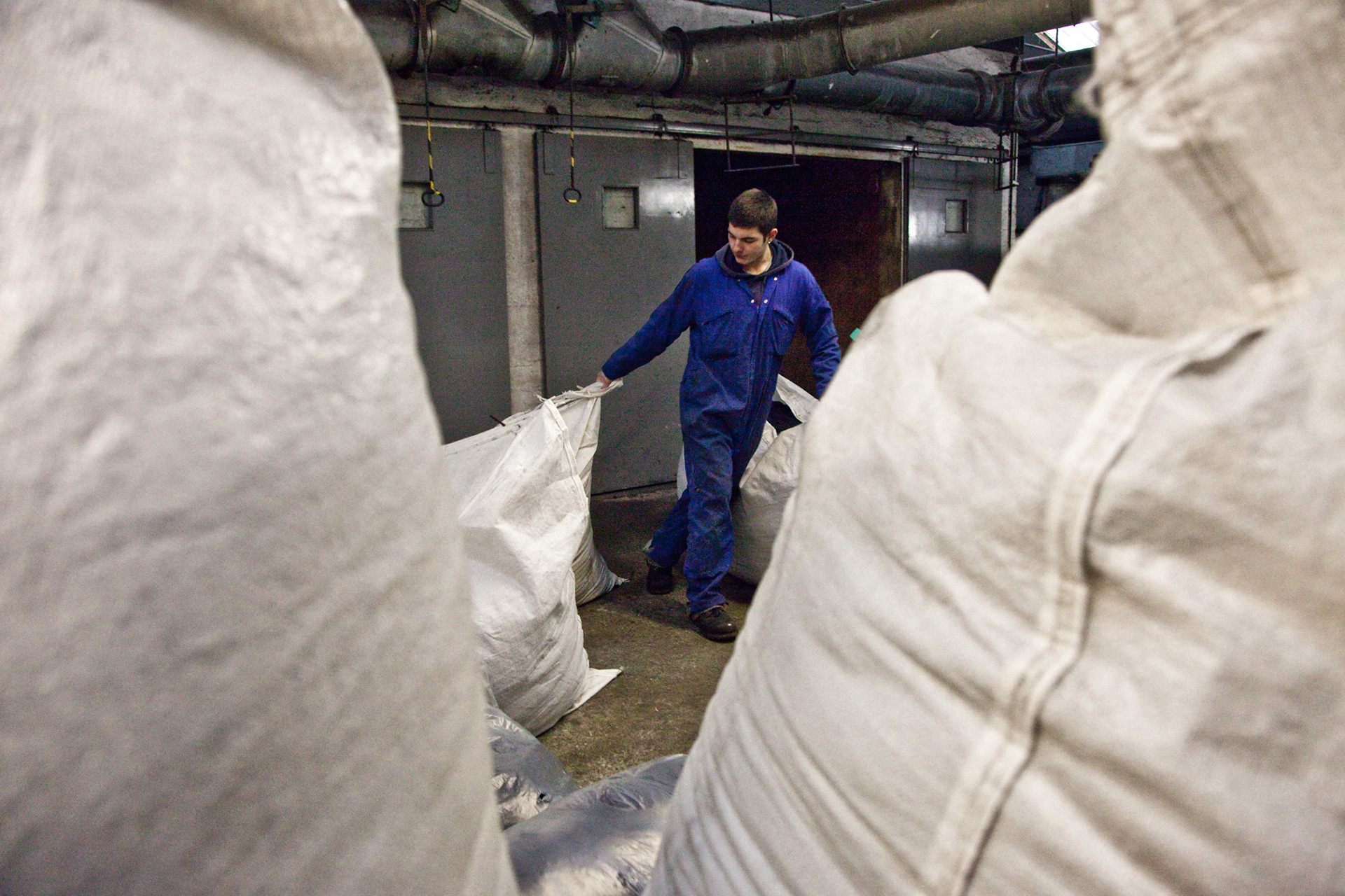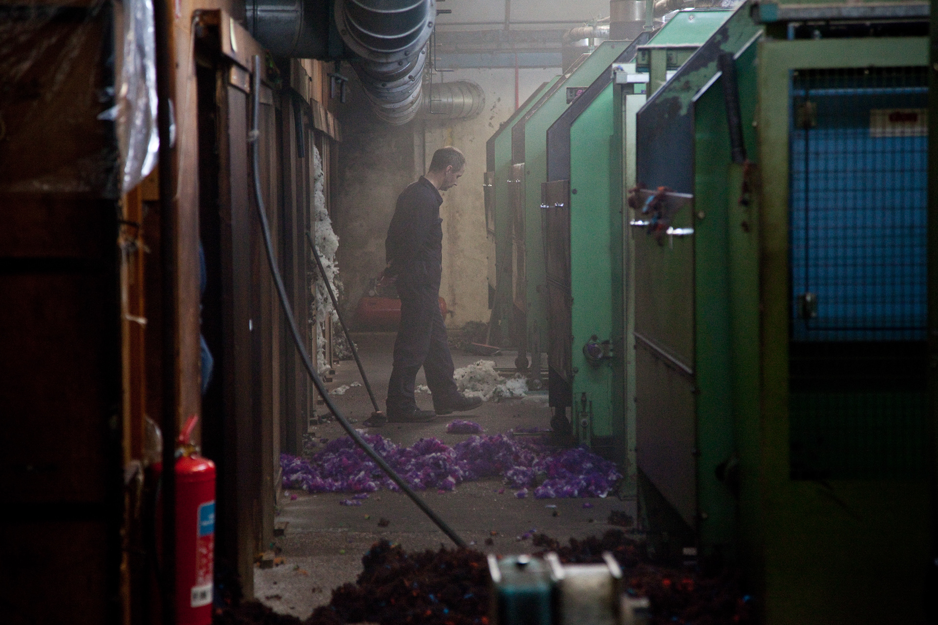 In 2009 I travelled to Lewis and Harris to make work about tweed mills, photographing in the mills in Carloway and Shawbost. I called the series '24 Bobbins to Ballalan' after a note penned on a wall in the mill in Carloway. This set of images is from the larger of the two mills, Harris Tweed Hebrides in Shawbost.